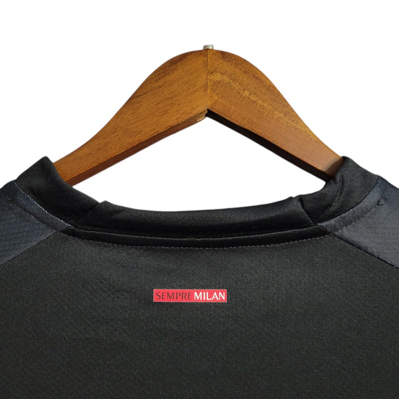 Esta camiseta del AC Milan, fabricada por Puma y patrocinada por Emirates Fly Better, fue la primera equipación utilizada en la temporada 2022-23. Con un diseño moderno que mantiene las clásicas franjas rojas y negras, destaca por sus mangas negras con detalles en los colores de la bandera italiana. Esta camiseta fue vestida por estrellas como Rafael Leão, Olivier Giroud, Theo Hernández y Sandro Tonali. En esta temporada, el Milan alcanzó las semifinales de la UEFA Champions League, reafirmando su regreso a la élite del fútbol europeo. Esta equipación simboliza la identidad del club y su ambición de recuperar la grandeza internacional.