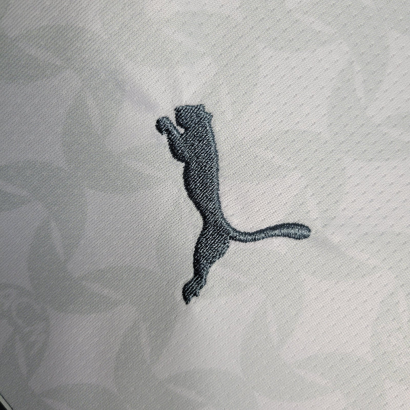 Esta camiseta del AC Milan, fabricada por Puma y patrocinada por Emirates Fly Better, fue la segunda equipación utilizada en la temporada 2022-23. Con un diseño elegante en blanco con una franja vertical en rojo y negro, acompañado de un patrón sutil en el tejido, esta camiseta rinde homenaje a la historia y la identidad del club. Fue vestida por estrellas como Rafael Leão, Olivier Giroud, Theo Hernández y Sandro Tonali. En esta temporada, el Milan alcanzó las semifinales de la UEFA Champions League, reafirmando su regreso a la élite del fútbol europeo. Esta equipación simboliza la tradición y el prestigio del club en los torneos internacionales.
