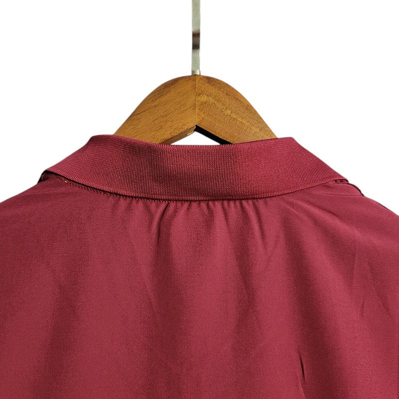 Esta camiseta te transportará a una época de fútbol inolvidable. El diseño de Nike, con el rojo burdeos intenso y los detalles en blanco y dorado, combinado con el logo de O2