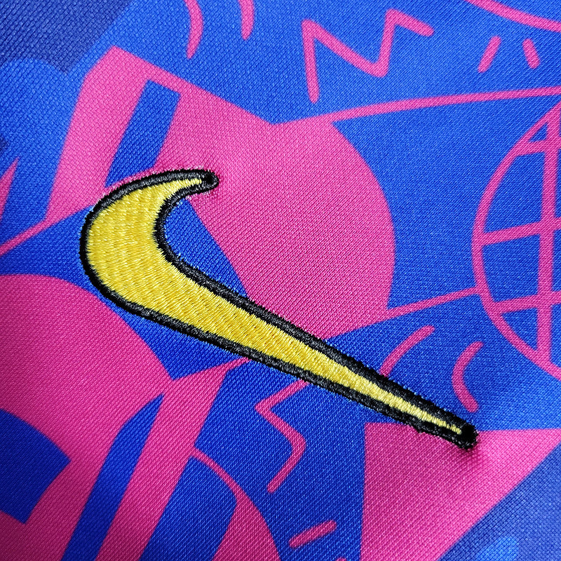 Esta edición especial de la camiseta del FC Barcelona rinde homenaje a la ciudad con un diseño innovador inspirado en sus barrios icónicos. Con una combinación vibrante de azul y rosa neón, junto con el patrocinador Rakuten, esta camiseta captura la esencia única del club. Perfecta para los fanáticos culés que buscan una pieza distintiva en su colección.