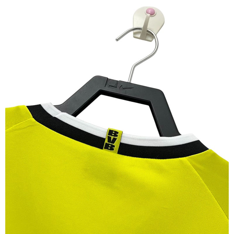 Un diseño clásico de Nike, con un vibrante amarillo y detalles en negro y blanco, que representa una temporada histórica para el Borussia Dortmund. En la campaña 1995/96, el BVB defendió con éxito su título de la Bundesliga, logrando el bicampeonato bajo la dirección de Ottmar Hitzfeld. Con estrellas como Matthias Sammer, Andreas Möller y Stéphane Chapuisat, este equipo sentó las bases para la futura conquista de la Champions League.