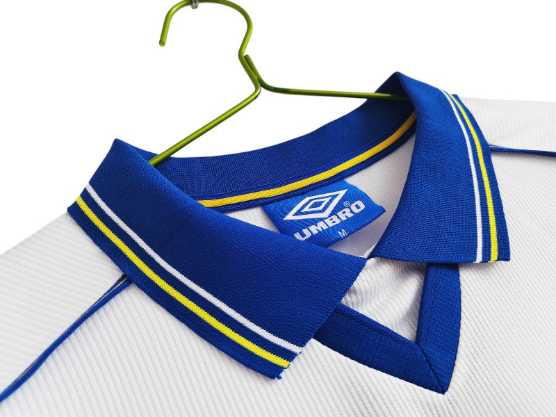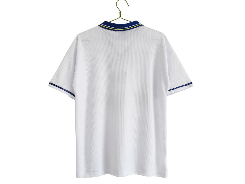 Un diseño elegante y atemporal de los Blues en los años 90. Fabricada por Umbro y patrocinada por Autoglass, esta segunda equipación luce un impecable blanco con detalles en azul y amarillo, ofreciendo un look clásico y refinado. Con esta camiseta, el Chelsea conquistó la Supercopa de Europa 1998.