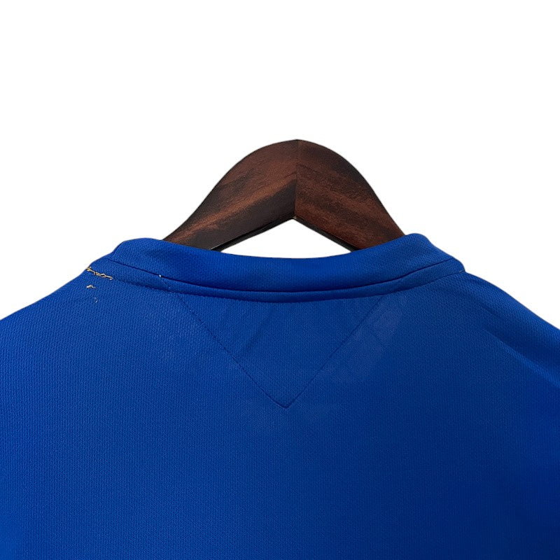 Un diseño histórico que conmemora el centenario del Chelsea FC (1905-2005). Fabricada por Umbro y patrocinada por Samsung Mobile, esta camiseta mantiene el clásico azul Chelsea, con detalles en dorado para celebrar los 100 años del club. Con esta equipación, los Blues, dirigidos por José Mourinho, defendieron con éxito su título y ganaron la Premier League 2005/06, con figuras legendarias como Frank Lampard, Didier Drogba y John Terry liderando el equipo.