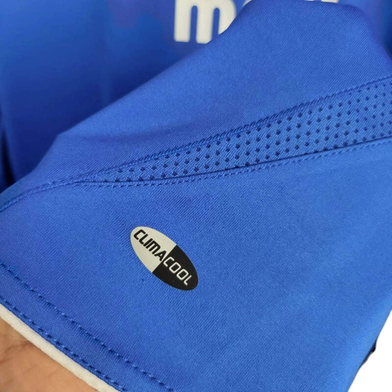 Un diseño moderno que marcó el inicio de la era Adidas en el Chelsea FC. Confeccionada con tecnología avanzada y el clásico azul de los Blues, esta camiseta incorpora las icónicas tres franjas blancas en los hombros y detalles en plateado. Patrocinada por Samsung Mobile, esta equipación acompañó al equipo de José Mourinho en la conquista de la FA Cup y la Copa de la Liga 2006/07, con figuras como Didier Drogba, Frank Lampard y Michael Ballack liderando el camino.
