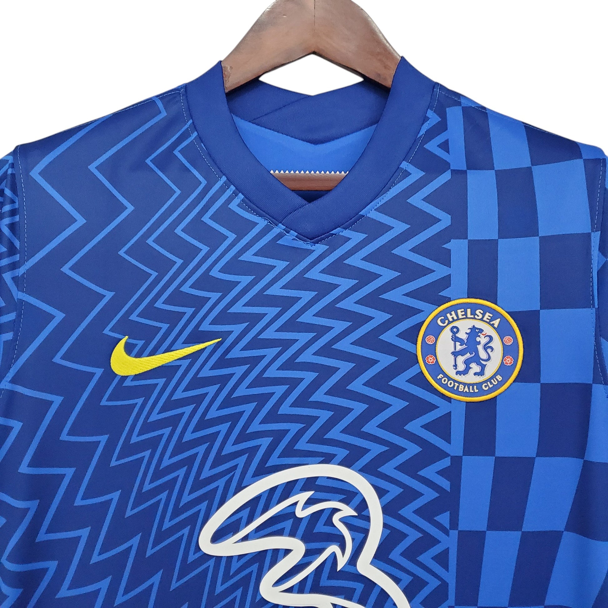 Un diseño innovador y arriesgado de Nike, esta equipación local del Chelsea combina un patrón geométrico psicodélico con tonos de azul y detalles en amarillo, reflejando la energía y el dinamismo del equipo. Patrocinada por Three, esta camiseta acompañó a los Blues en una temporada competitiva en la Premier League y la Champions League, con figuras como Mason Mount, Kai Havertz y N’Golo Kanté brillando en el campo.