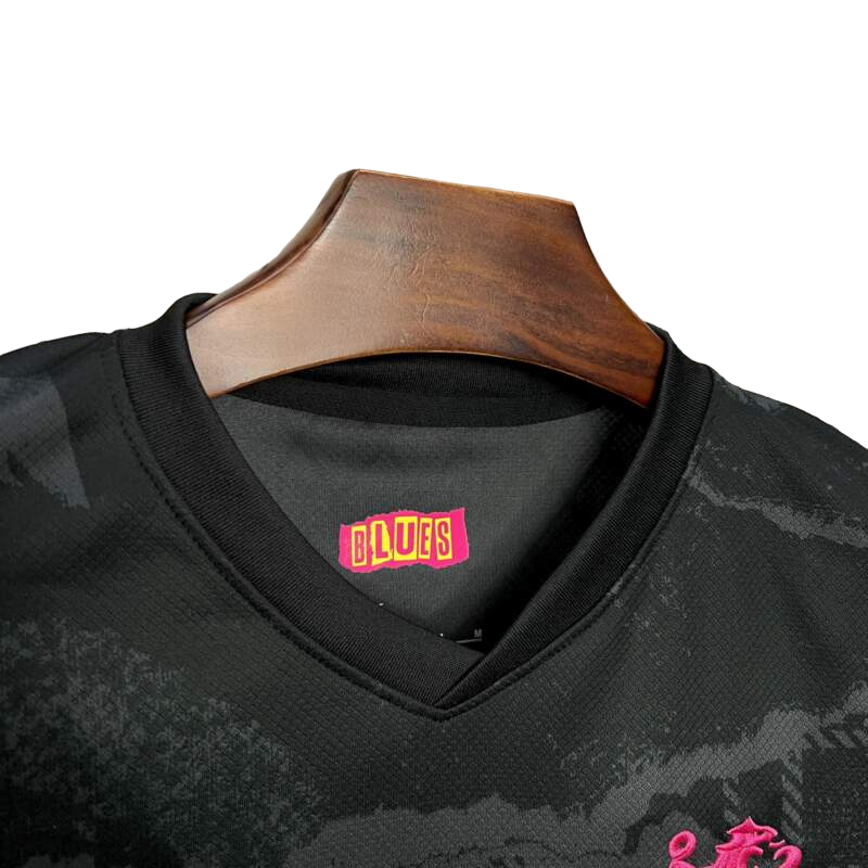 La tercera equipación del Chelsea 2024-2025 es un derroche de estilo. Su combinación de gris, negro y rosa crea un look urbano y sofisticado que te hará destacar en las gradas.