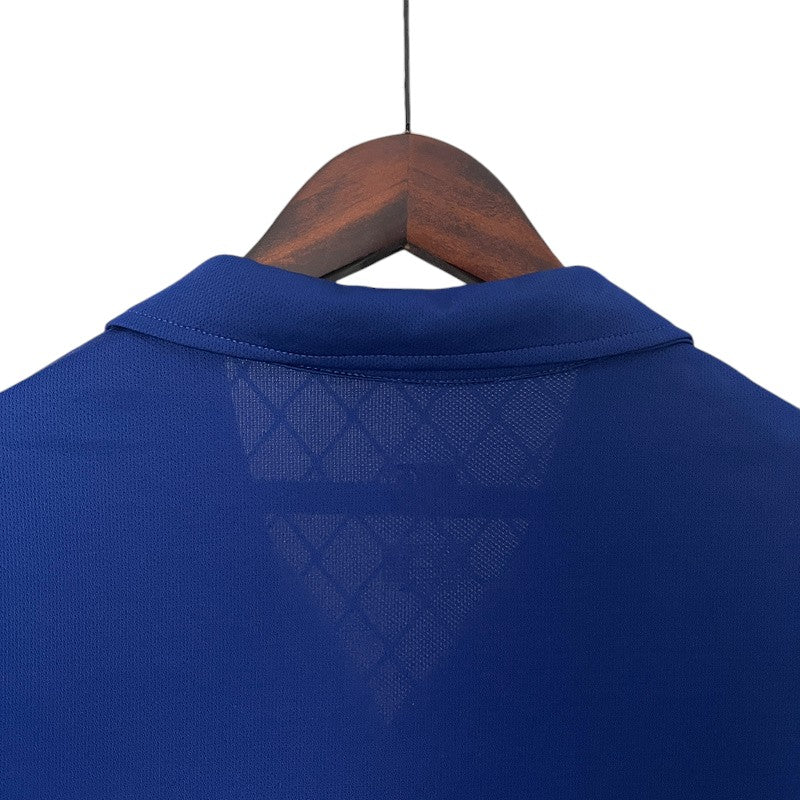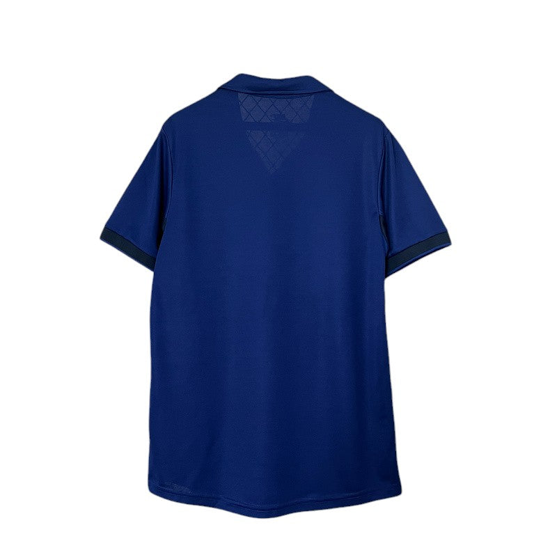 La camiseta del Inter de Milán 1998/99 en su tercera versión es una de las más elegantes de la era Nike, con su diseño en azul marino, una franja horizontal en negro y blanco y el icónico patrocinio de Pirelli en el pecho. Utilizada en competiciones europeas y algunos partidos clave de la temporada, esta equipación fue vestida por figuras como Ronaldo Nazário, Roberto Baggio y Javier Zanetti en un año desafiante para los Nerazzurri, que luchaban por volver a la cima del fútbol italiano. Un diseño atemporal que sigue siendo un objeto de culto para los coleccionistas y fanáticos interistas.
