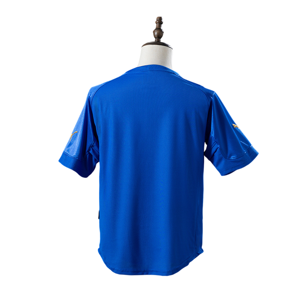 Camiseta azul tradicional de la selección de Italia, con diseño limpio y elegante que resalta el escudo nacional en el pecho acompañado de las estrellas doradas. Un modelo sobrio y atemporal que representa la historia, la jerarquía y el estilo inconfundible de la Azzurra. Ideal para fanáticos del fútbol italiano y coleccionistas de camisetas clásicas.