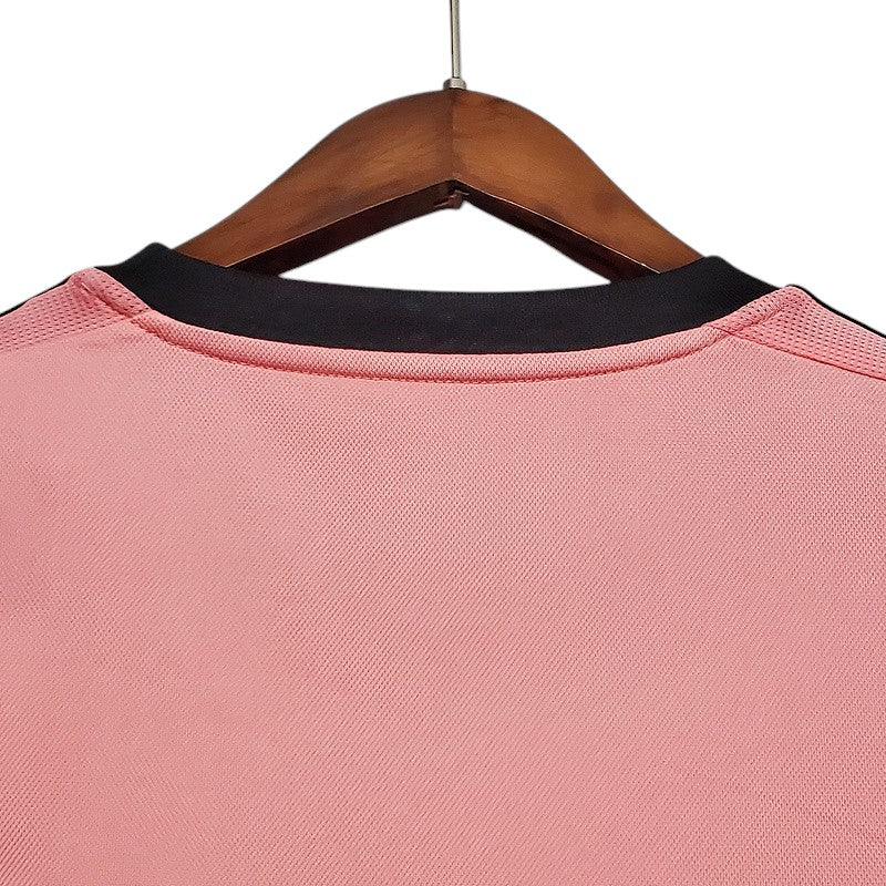 La Juventus 2015-2016, diseñada por Adidas, presentó un diseño rosa vibrante en su segunda equipación, inspirado en la histórica camiseta rosa que usó el club en sus primeros años. Con un patrocinador Jeep en el centro y detalles en negro y rojo, este uniforme combinó modernidad con tradición. En esta temporada, la Juve, liderada por Massimiliano Allegri, ganó el doblete de Serie A y Coppa Italia, con figuras como Paul Pogba, Dybala y Buffon brillando en el equipo.