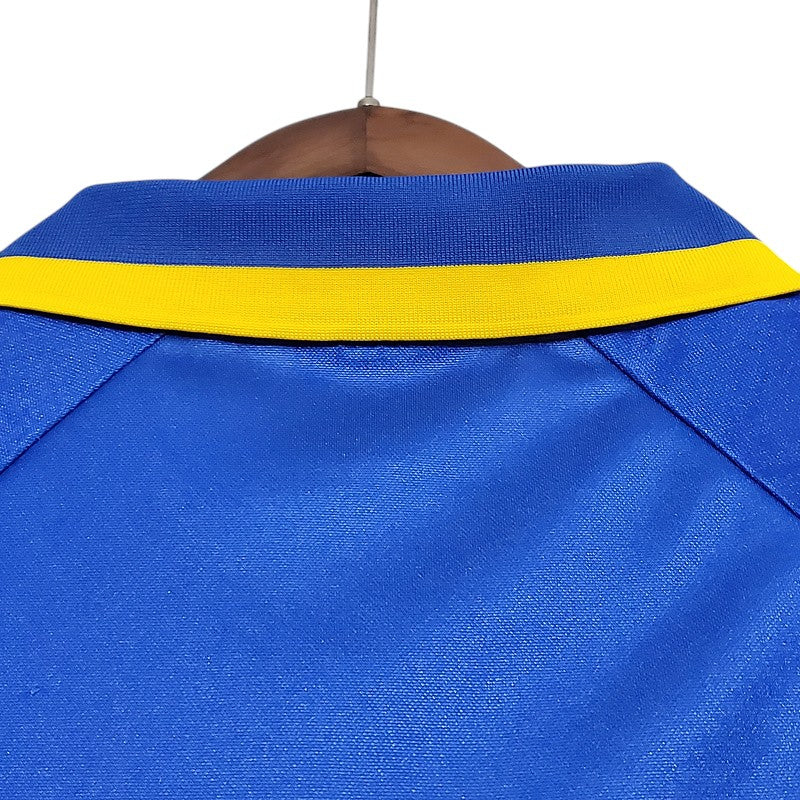 Esta icónica camiseta azul con detalles en amarillo, fabricada por Kappa y patrocinada por Sony, fue utilizada por la Juventus entre 1995 y 1997, destacando en la final de la Champions League 1995-96, donde el equipo venció al Ajax en los penales y consiguió su segunda Copa de Europa. Vestida por figuras como Del Piero, Zidane y Deschamps, este diseño se convirtió en un símbolo de la grandeza europea de la Vecchia Signora.