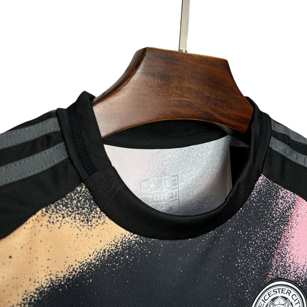 Camiseta oficial del Leicester City FC, segunda equipación 2024. Un diseño vanguardista en negro con toques de color que no pasará desapercibido.