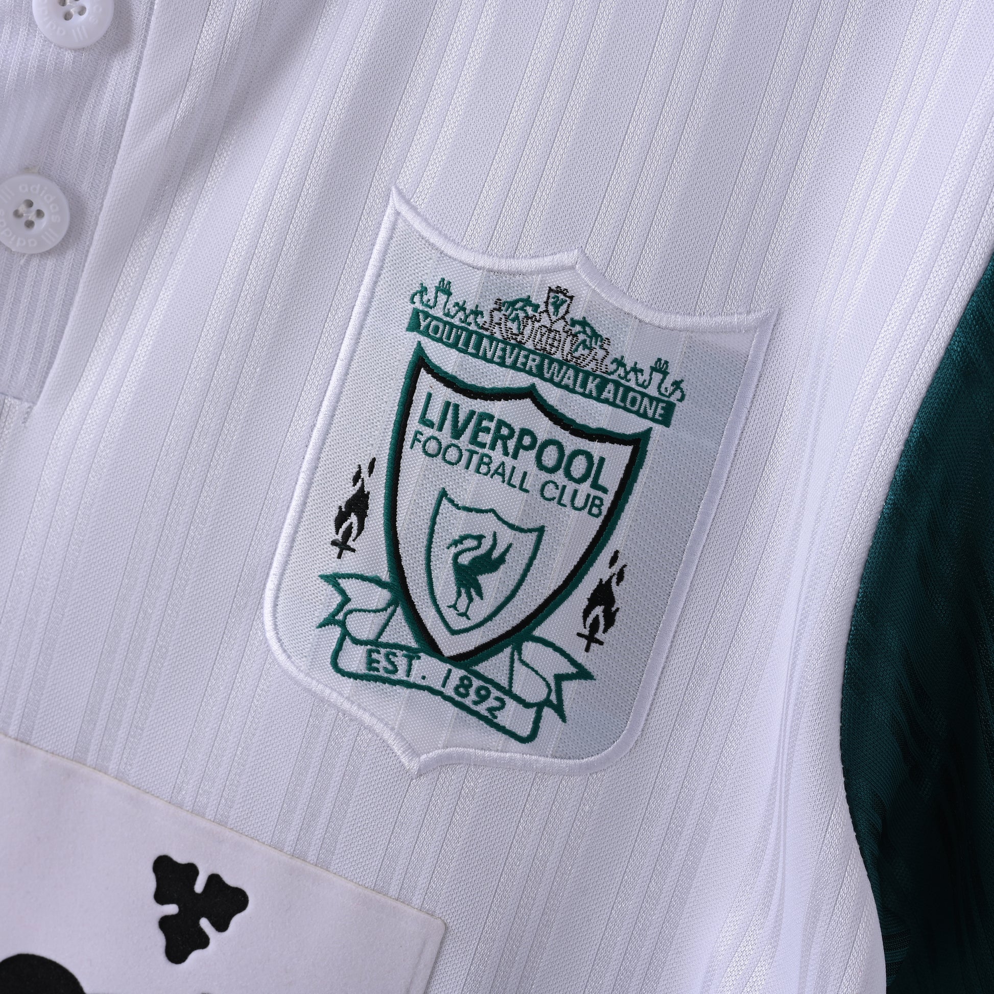 Un diseño clásico con esencia noventera. La segunda equipación del Liverpool 1995/96 presenta un llamativo color verde botella con negro, acompañado del logo central de Adidas y el mítico patrocinio de Carlsberg. Esta camiseta fue lucida por figuras como Robbie Fowler y Steve McManaman durante una época de renovación en Anfield. Una prenda que mezcla nostalgia, estilo retro y pura identidad red.