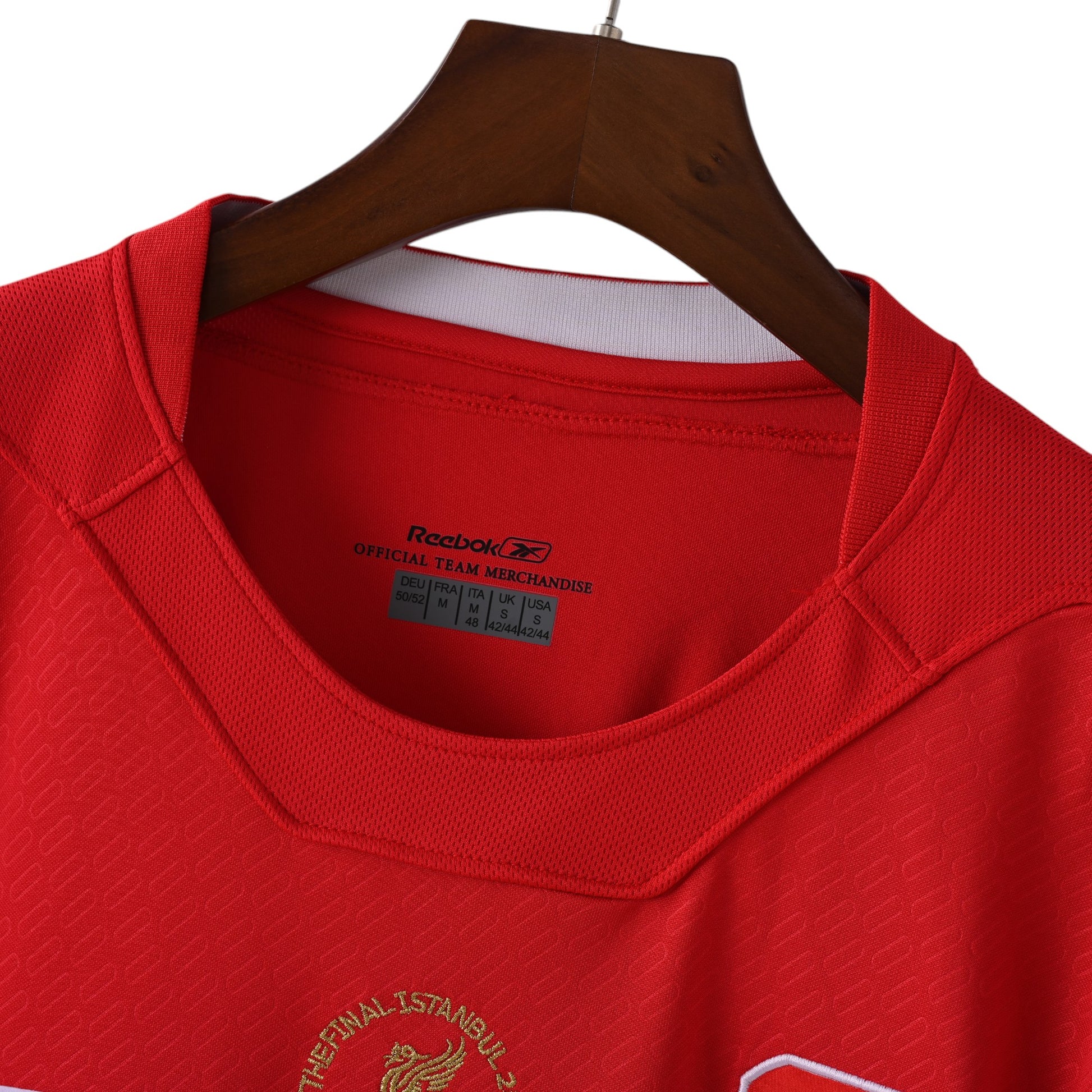 Uno de los diseños más legendarios en la historia del Liverpool FC. Fabricada por Reebok y patrocinada por Carlsberg, esta camiseta fue la que los Reds usaron en la final de la UEFA Champions League 2005, cuando protagonizaron el "Milagro de Estambul" al remontar un 3-0 contra el AC Milan y coronarse campeones en los penales. Con el parche de la Champions League en la manga y el bordado del trofeo de la Orejona en el pecho, esta es una prenda obligatoria para cualquier hincha del Liverpool.