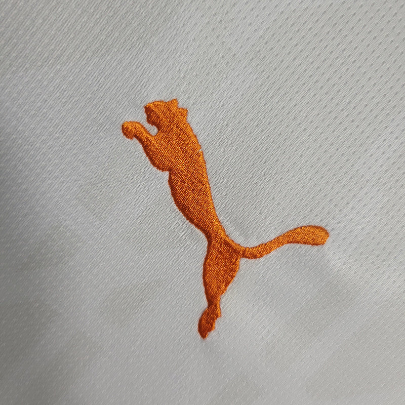 La segunda equipación del Manchester City 2023/24, diseñada por Puma, combina un elegante diseño en blanco con detalles en burdeos y dorado, evocando la rica historia del club y sus icónicos uniformes del pasado. Con un patrón sutil en el tejido, esta camiseta refleja la modernidad y el dominio de los "Sky Blues" en el fútbol actual. En esta temporada, el City busca defender su triplete histórico logrado el año anterior, con estrellas como Erling Haaland, Kevin De Bruyne y Phil Foden brillando en la Premier League y la Champions.