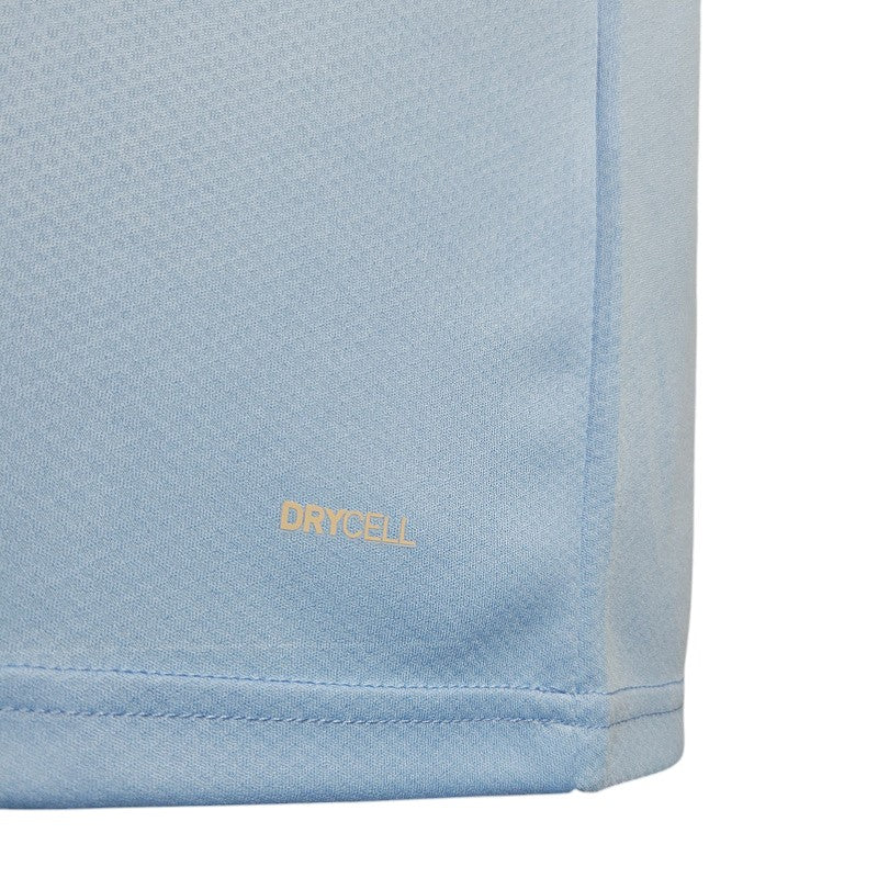 La camiseta local del Manchester City 2022/23 rinde homenaje a la era dorada de los "Sky Blues" con un diseño clásico en celeste y detalles en burdeos en el cuello y mangas, inspirado en las equipaciones legendarias de los años 60. Esta camiseta fue testigo de una temporada histórica en la que el equipo de Pep Guardiola conquistó el triplete, ganando la Premier League, la FA Cup y la Champions League. Con Erling Haaland batiendo récords y Kevin De Bruyne dominando el mediocampo, este uniforme se convirtió en un símbolo de grandeza.