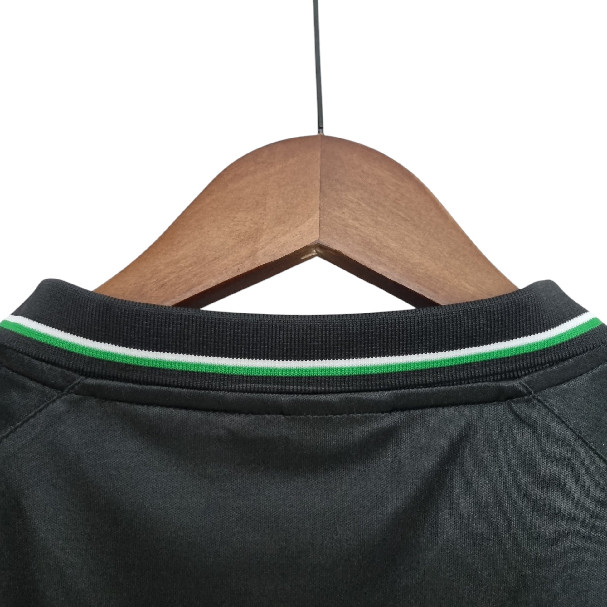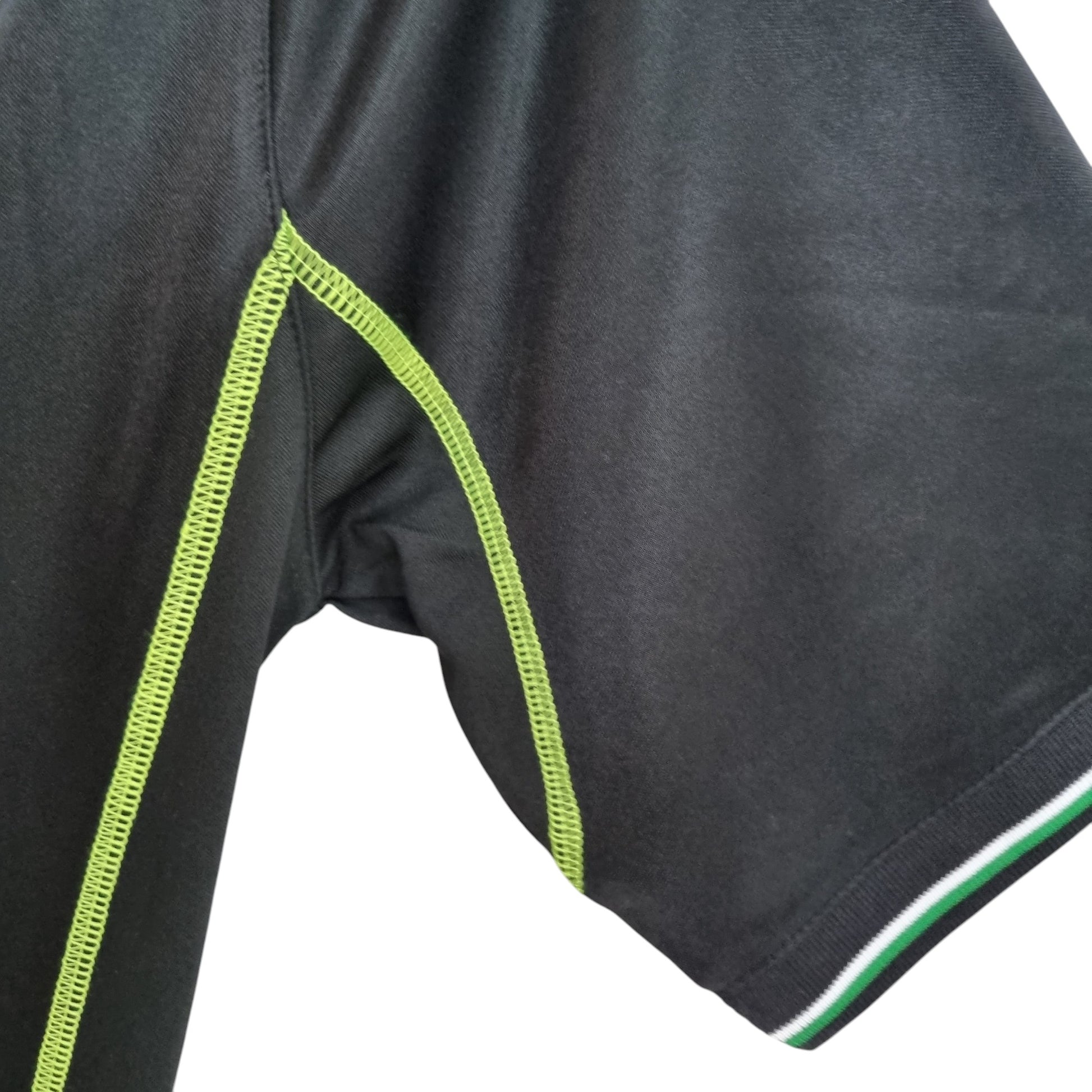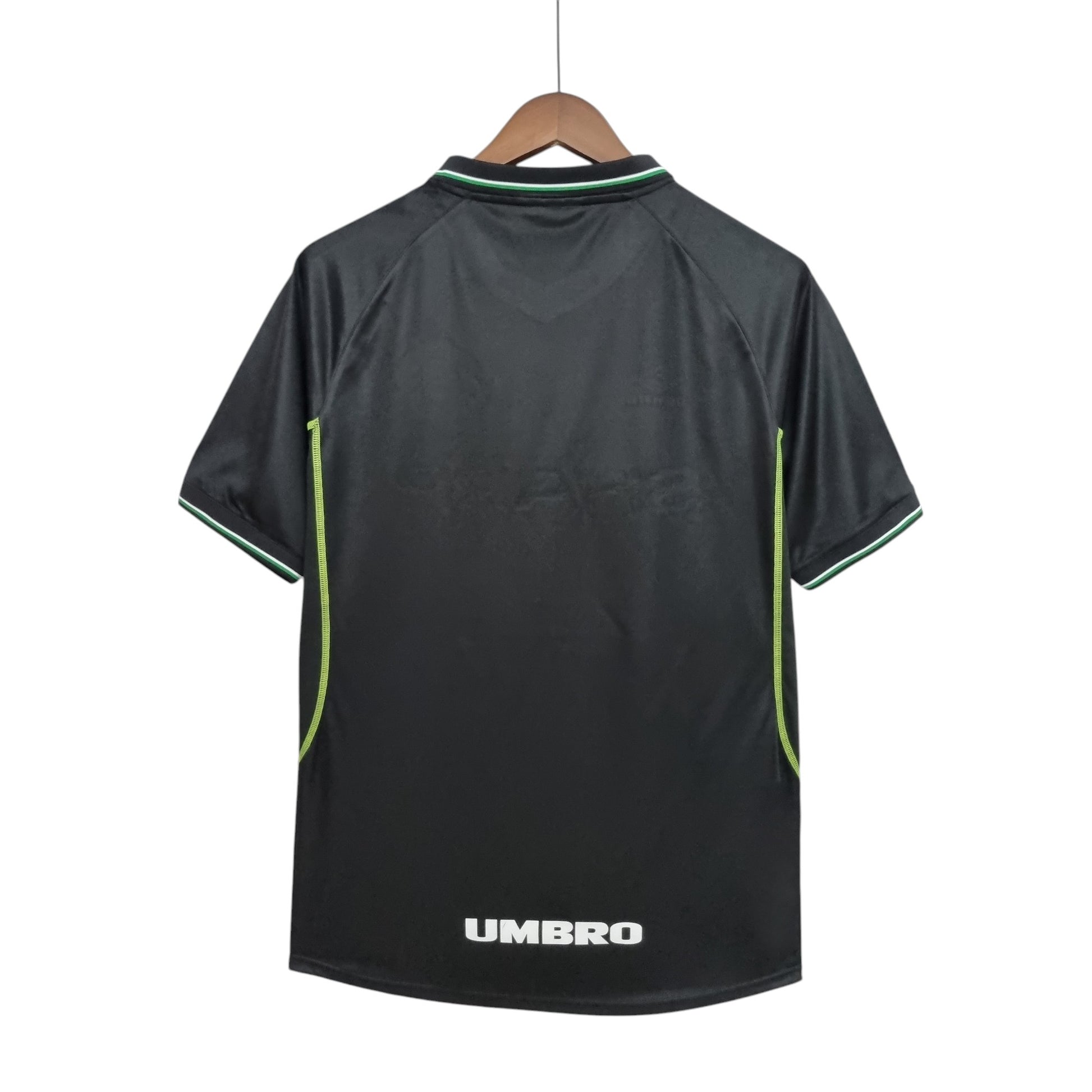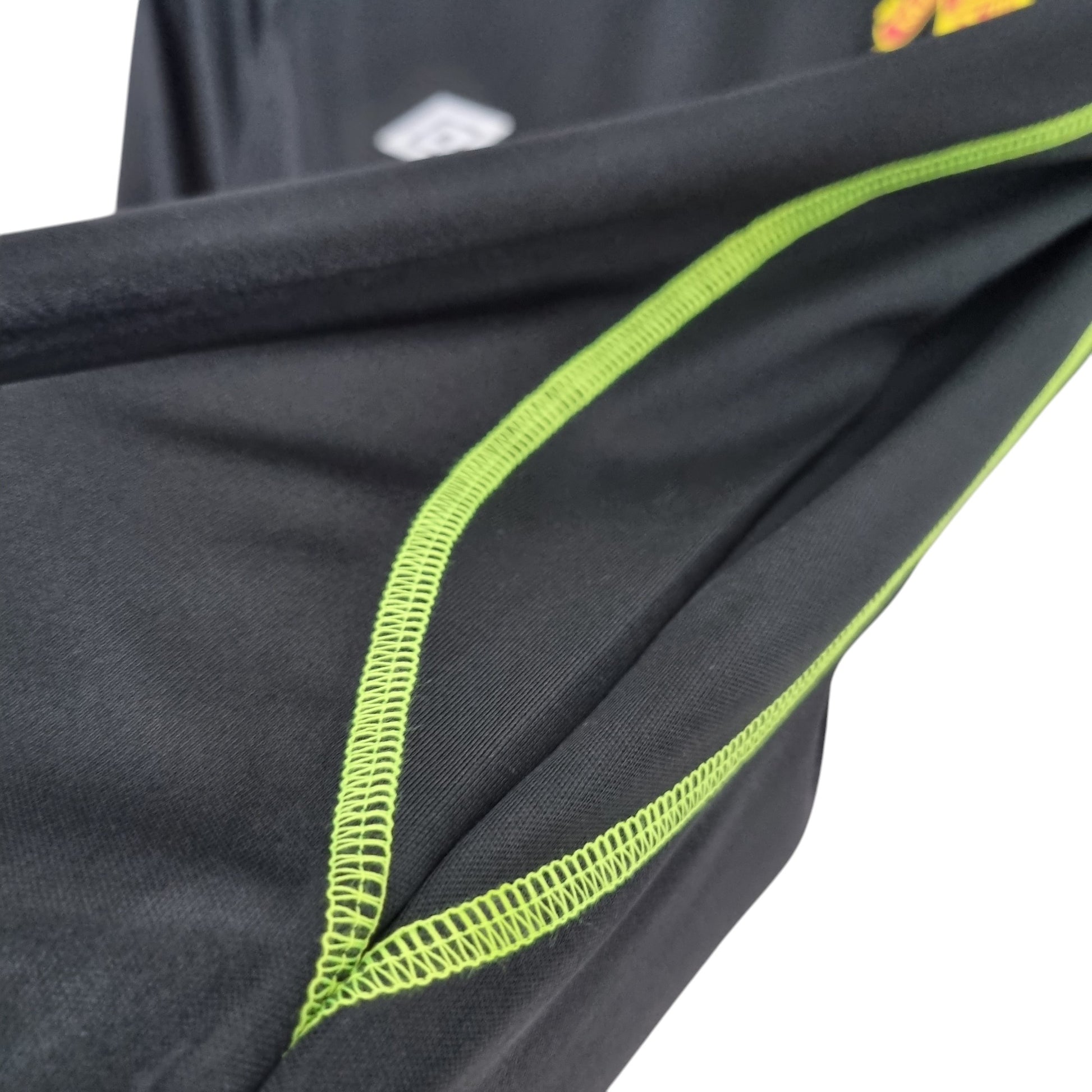 Esta camiseta en negro con detalles en verde fue utilizada como tercera equipación del Manchester United entre 1993 y 1995. Fabricada por Umbro y patrocinada por Sharp, este diseño rompedor se convirtió en un clásico entre los aficionados. Con un estilo minimalista y toques en verde neón, esta equipación alternativa fue utilizada en varias competiciones durante la época dorada de los Red Devils bajo la dirección de Sir Alex Ferguson. Es una prenda histórica que representa el inicio del dominio del United en la Premier League.