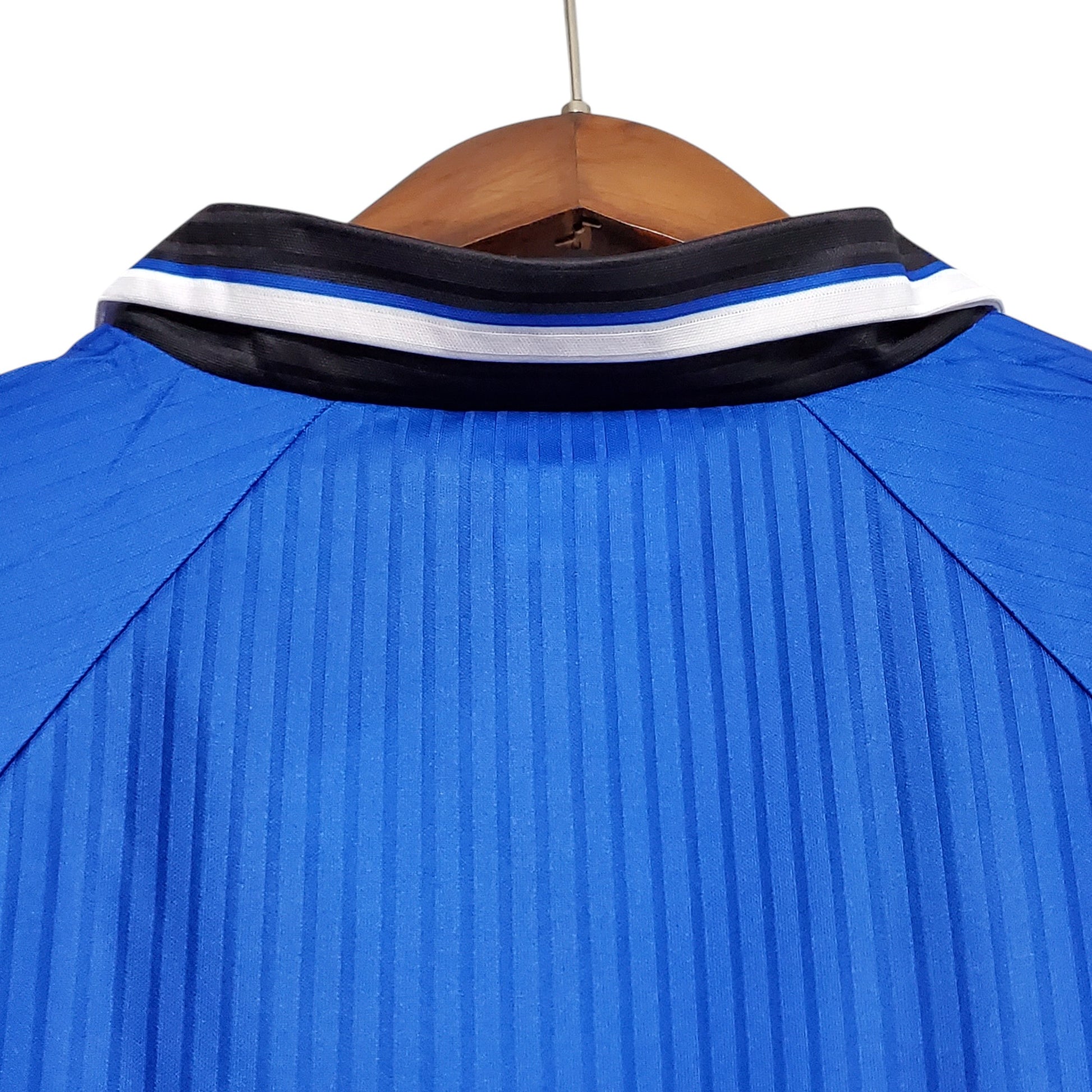 La mítica segunda equipación del Manchester United de la temporada 1996-1997, diseñada por Umbro y patrocinada por Sharp, destacó por su vibrante color azul con detalles en negro y blanco. Esta camiseta fue testigo de grandes momentos de los Red Devils en la Premier League y competiciones europeas, con jugadores legendarios como Eric Cantona, David Beckham y Ryan Giggs llevando este diseño en el campo. Su estilo audaz y agresivo sigue siendo una de las favoritas entre los aficionados y coleccionistas.