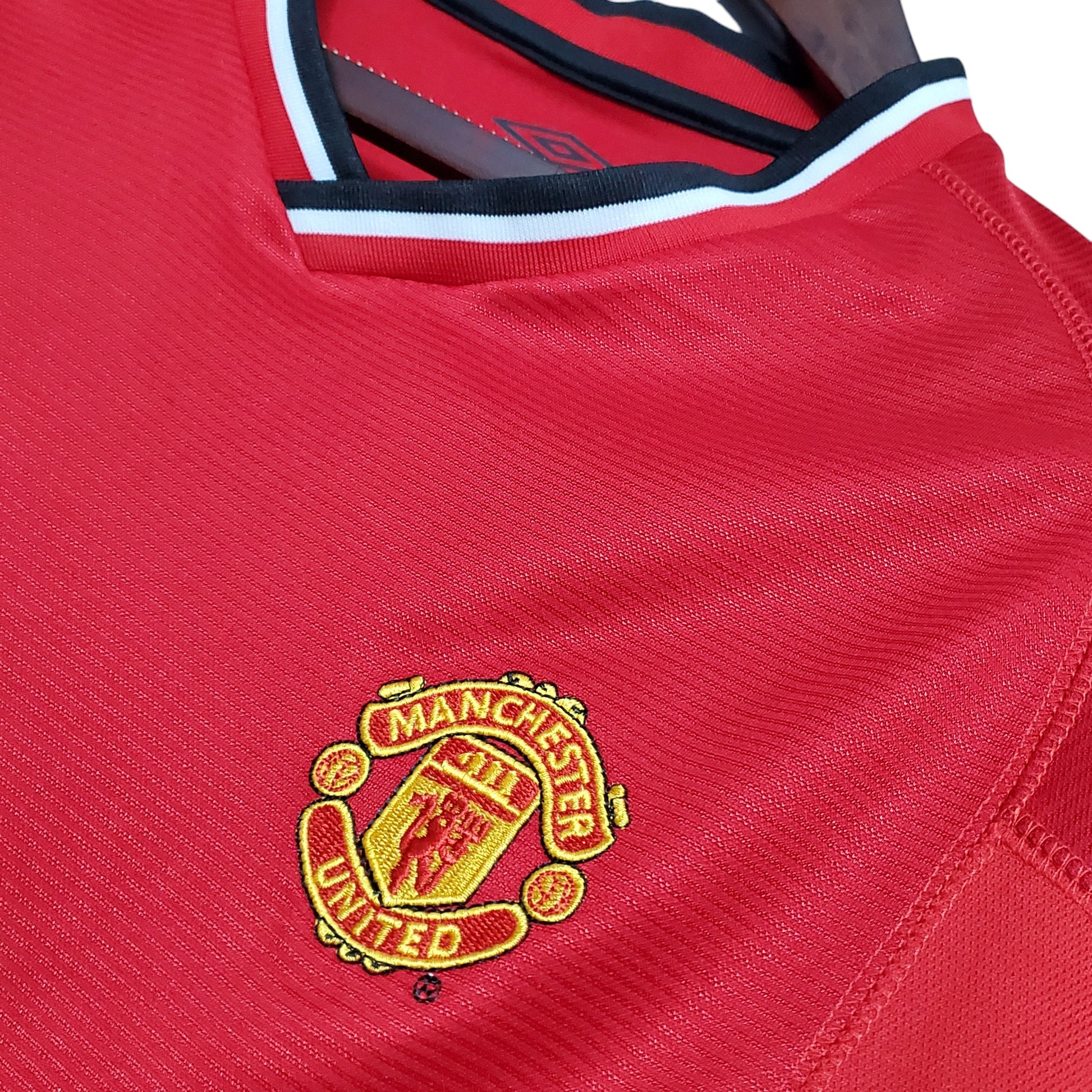Esta camiseta del Manchester United de la temporada 2000-2001, fabricada por Umbro y con el patrocinio de Vodafone, representa una época de dominio en la Premier League bajo la dirección de Sir Alex Ferguson. Con su clásico diseño rojo con detalles en negro y blanco, esta equipación fue utilizada por figuras legendarias como David Beckham, Paul Scholes y Roy Keane en su camino hacia otro título de liga.