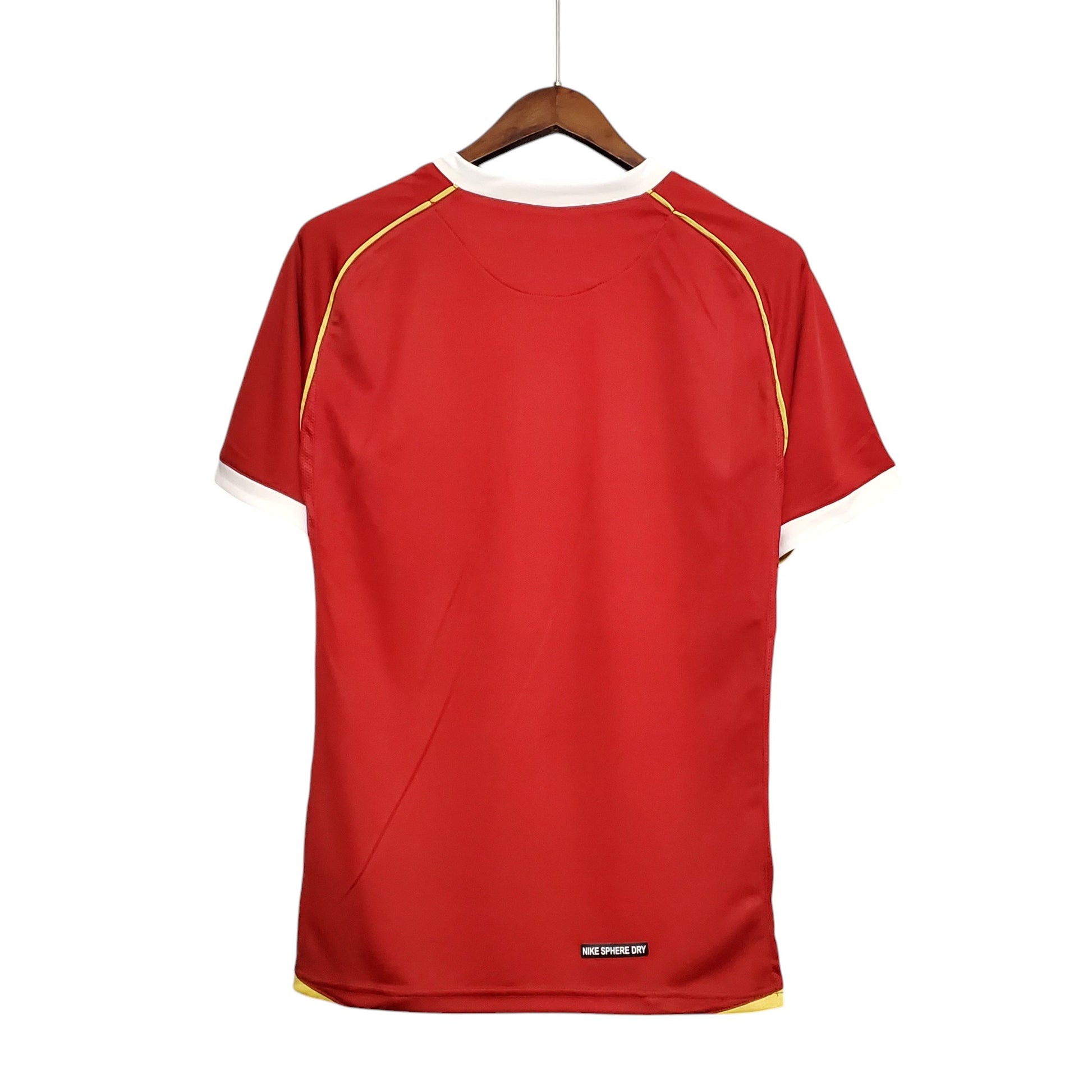 La camiseta del Manchester United de la temporada 2006/07, diseñada por Nike y patrocinada por AIG, representa una de las épocas doradas del club bajo la dirección de Sir Alex Ferguson. Con un diseño elegante en rojo con detalles dorados y blancos, esta equipación fue utilizada por figuras legendarias como Cristiano Ronaldo, Wayne Rooney y Paul Scholes, en la temporada en la que el United conquistó la Premier League. Un diseño clásico que simboliza el renacer del club en la cima del fútbol inglés.