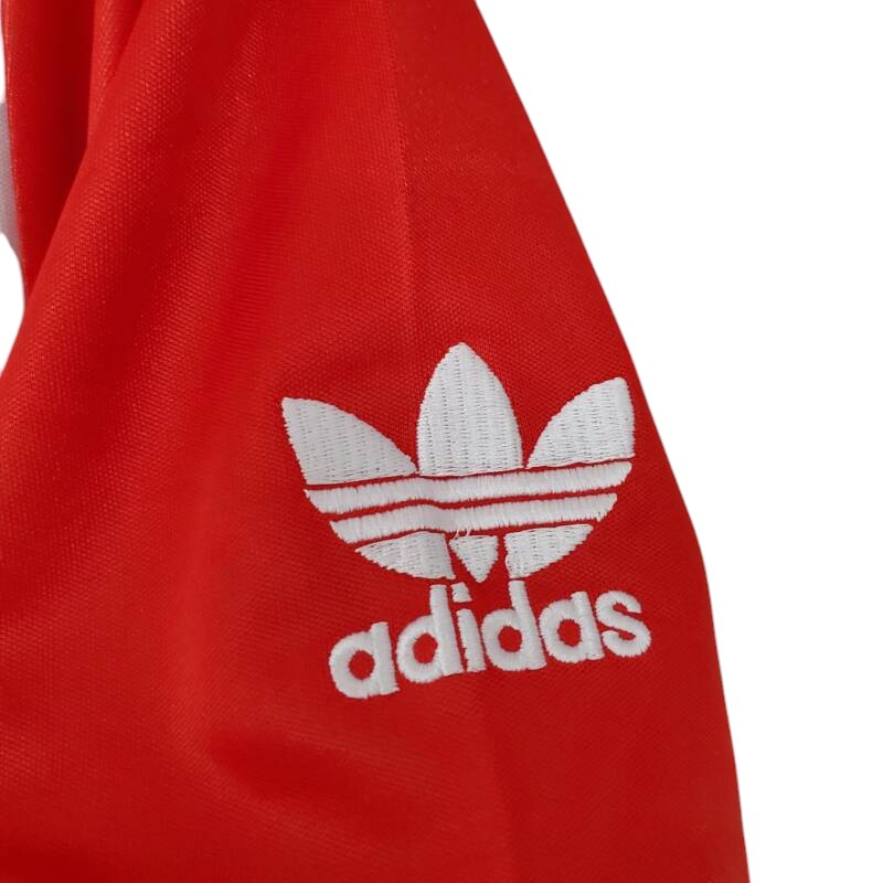 Un clásico absoluto del Manchester United, esta camiseta de la temporada 1985-1986 refleja la esencia de los Red Devils en los años 80. Diseñada por Adidas y patrocinada por Sharp, destaca por su color rojo vibrante con detalles en blanco y negro en las mangas y el cuello en V. Con el escudo bordado en el centro del pecho y el inconfundible logo de Adidas en las mangas, esta camiseta evoca una era de fútbol intenso y memorable en Old Trafford.