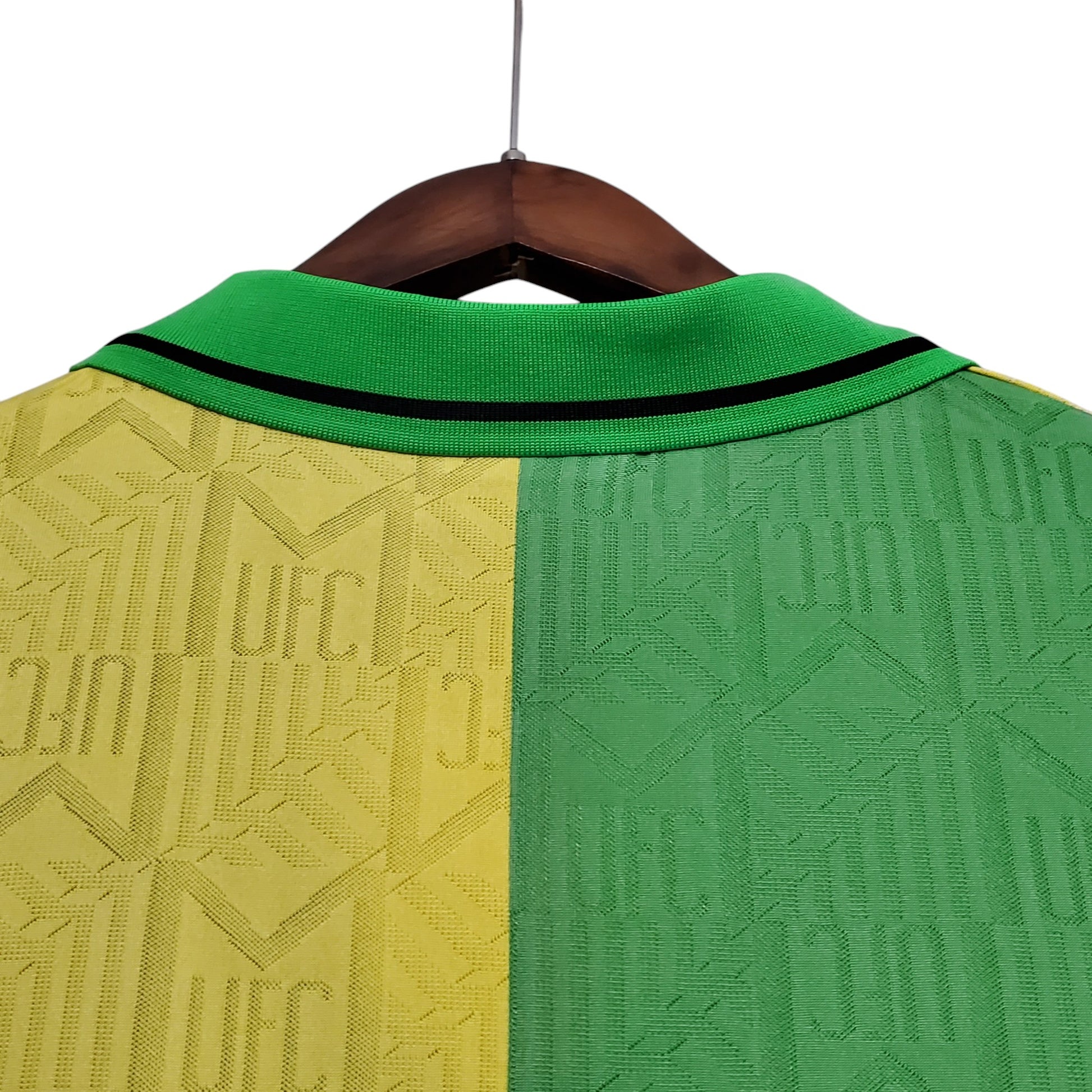 Esta icónica camiseta en verde y amarillo es un homenaje a los Newton Heath, el club que dio origen al Manchester United en 1878. Confeccionada por Umbro y patrocinada por Sharp, esta equipación alternativa de los Red Devils en la era 1992-1994 rememora las raíces del equipo antes de convertirse en la potencia mundial que es hoy. Popular entre los aficionados más nostálgicos, esta camiseta fue usada en ediciones limitadas, representando la conexión del club con su pasado y su identidad histórica.