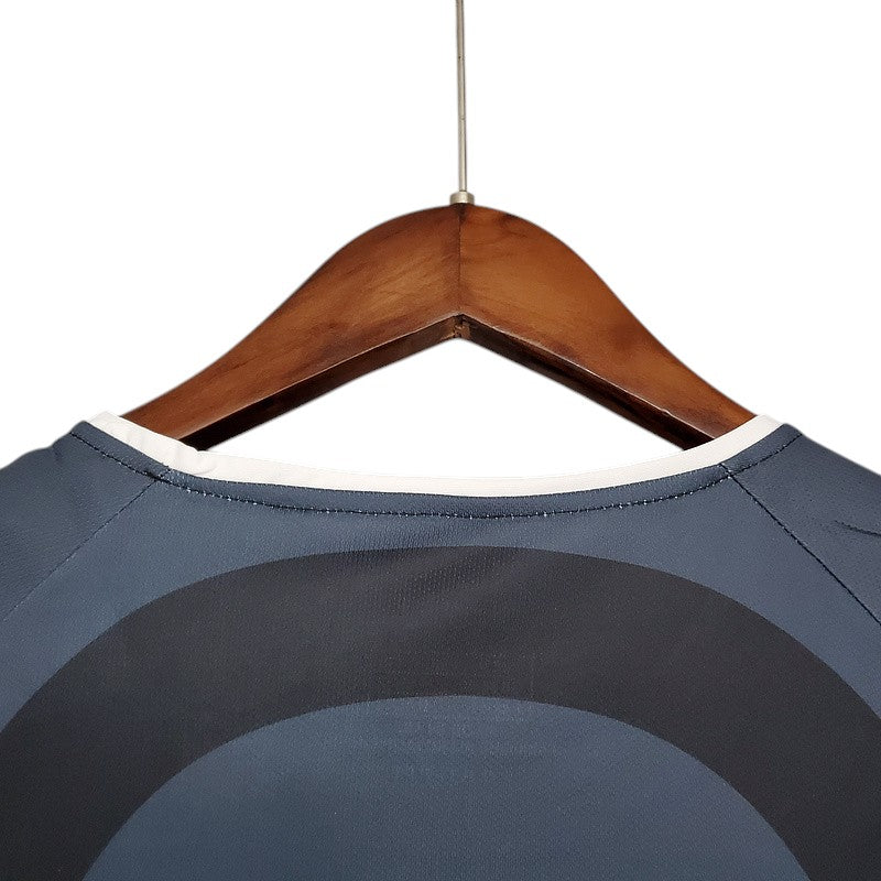 La tercera equipación del Paris Saint-Germain para la temporada 2001-2002 es una de las más icónicas y originales del club. Con un diseño en tonos gris oscuro y negro, acompañado de líneas curvas que le dan un estilo moderno para la época, esta camiseta fue utilizada en competiciones nacionales e internacionales. Patrocinada por Opel y diseñada por Nike, esta temporada fue especial con la presencia de Ronaldinho, quien dejó momentos mágicos en el Parque de los Príncipes.