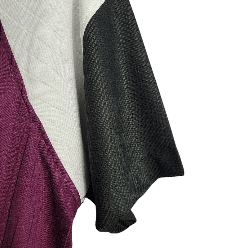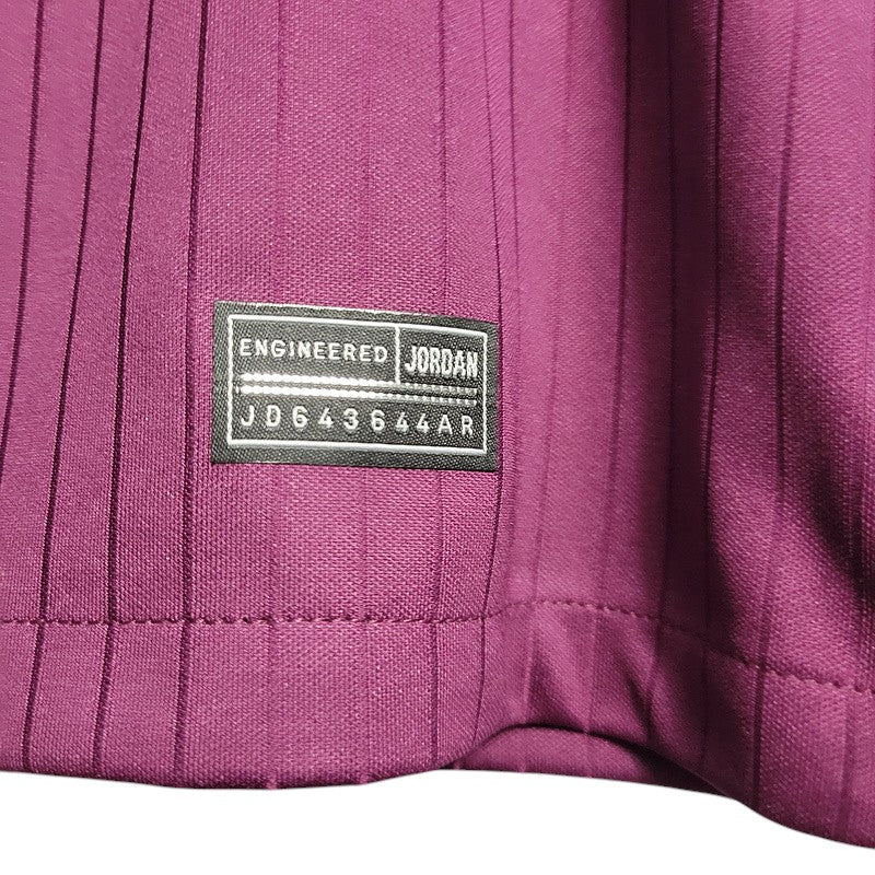 La tercera equipación del Paris Saint-Germain para la temporada 2020-2021 destaca por su diseño innovador en burdeos con detalles dorados y negros, una combinación elegante inspirada en la moda parisina y la alta costura. Creada por Jordan Brand, esta camiseta simboliza la fusión entre el fútbol y el estilo urbano. Durante esta temporada, el PSG alcanzó las semifinales de la Champions League, con Neymar y Mbappé liderando el equipo en Europa.