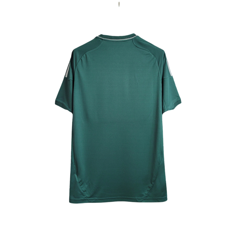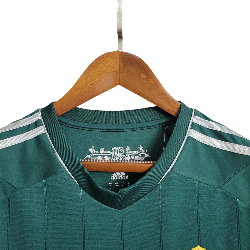 Histórica tercera equipación del Real Madrid de la temporada 2012/13, diseñada por Adidas y patrocinada por Bwin, con un innovador color verde que la hace única en la historia del club. Esta camiseta fue utilizada en momentos icónicos, como la victoria en Old Trafford contra el Manchester United en la Champions League, con un gol decisivo de Cristiano Ronaldo. Un diseño especial que evoca grandes noches europeas y el espíritu competitivo del equipo de Mourinho.