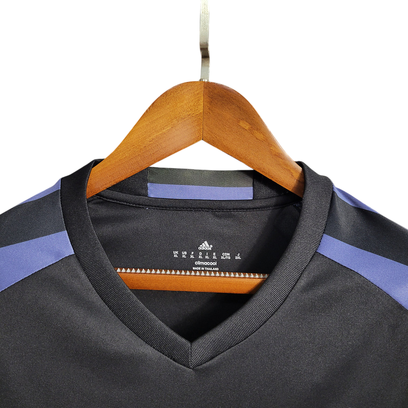 La segunda equipación del Real Madrid en la temporada 2016/17 destaca por su diseño en negro con detalles en morado, rindiendo homenaje a colores icónicos del club. Fabricada con tecnología Climacool, ofrece transpirabilidad y comodidad. Esta camiseta fue testigo de una temporada histórica en la que el equipo conquistó la Liga y la Champions League, logrando un doblete inolvidable.