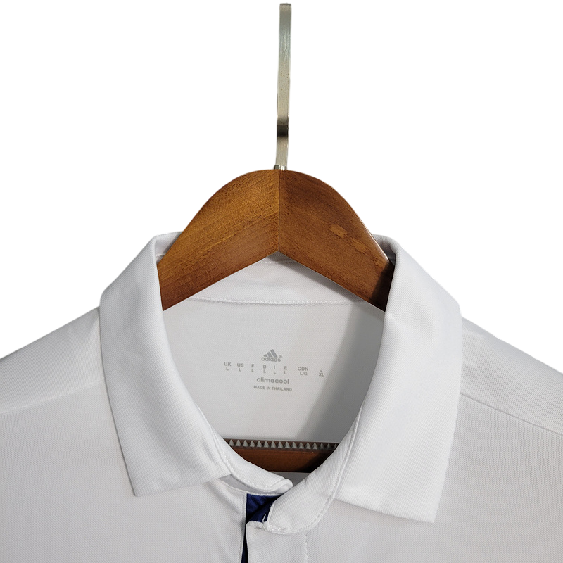 Icónica primera equipación del Real Madrid de la temporada 2016/17, diseñada por Adidas y patrocinada por Fly Emirates, con un diseño clásico en blanco y detalles en azul. Esta camiseta fue testigo de una de las temporadas más gloriosas del club, en la que el equipo dirigido por Zinedine Zidane, con figuras como Cristiano Ronaldo, Sergio Ramos y Modrić, conquistó LaLiga y la Champions League, logrando el doblete y convirtiéndose en el primer equipo en la era moderna en ganar la Champions de manera consecutiva. Un diseño legendario que representa la supremacía del Madrid en Europa.