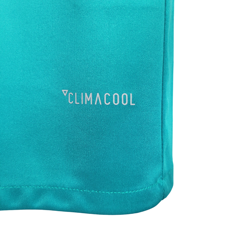 La tercera equipación del Real Madrid 2017/18 destaca por su innovador diseño en azul turquesa con patrones pixelados en un tono más oscuro. Confeccionada con tecnología Climacool, ofrece comodidad y frescura. Esta camiseta fue testigo del histórico tricampeonato en la Champions League, reafirmando la supremacía del equipo en Europa.