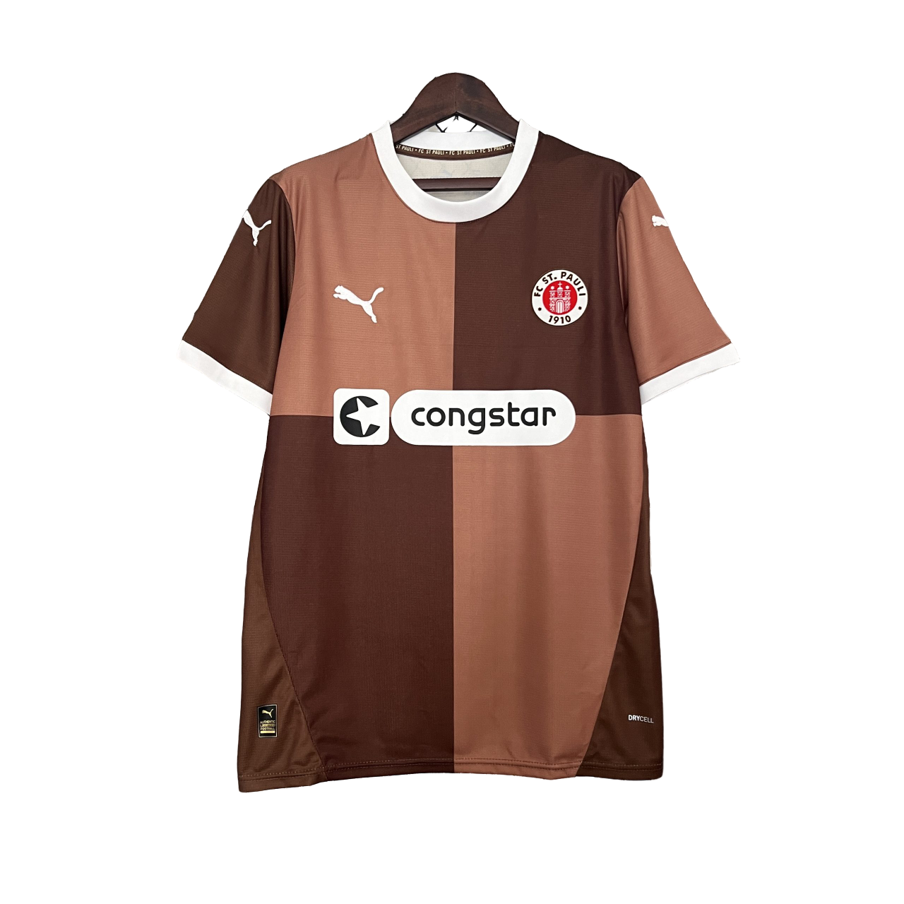 La nueva camiseta local del St. Pauli combina el diseño tradicional con tecnología deportiva de última generación. Ideal para los verdaderos aficionados que quieren lucir los colores del club con comodidad.