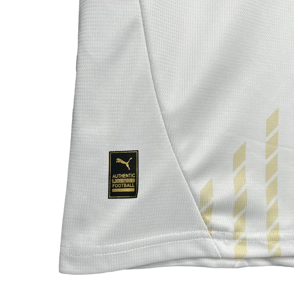 La segunda equipación del FC St. Pauli para la nueva temporada. Un diseño moderno y elegante en blanco con detalles en marrón, perfecto para los verdaderos aficionados.